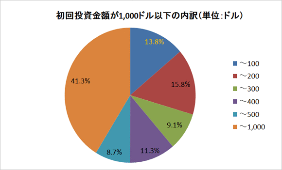 さらにその1,000ドル以下の投資額の内訳を見てみると100ドル以下で取引を始めるお客様も多いことがわかります。100ドル以下で買うことができる株が多い中、まずは1株買ってみよう、という意識で投資されるお客様が多いのではないかと思います。