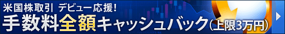 マネックス証券では、米国株投資を気軽に始めていただけるよう、初回の米ドル購入(もしくは、証券総合取引口座から外国株取引口座へ米ドルの振替)から20日間は、取引手数料を最大3万円までキャッシュバックするプログラムをご用意しております。