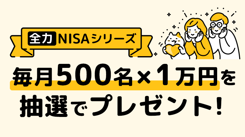 NISA口座で投資信託の積立(月間合計3万円以上)を行ったお客様の中から、毎月抽選で500名様に現金1万円をプレゼント!(エントリー要)