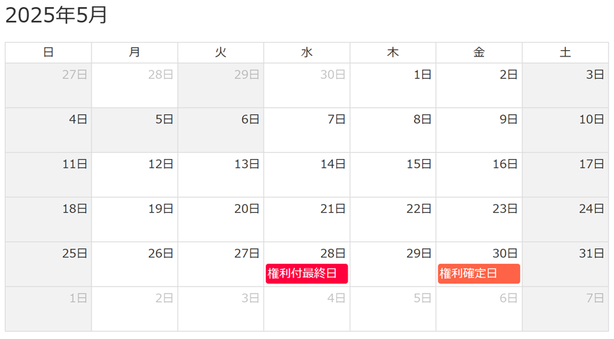 権利付最終日:権利確定日の2営業日前