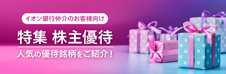 株主優待とは、企業が株主に対してサービスや商品を提供する制度で、個人投資家にとって魅力的なものです。このページでは、イオン銀行仲介のお客様向けに、株主優待の内容や株主優待銘柄の見つけ方などをご紹介します。たとえば、毎月の人気の株主優待銘柄ランキングや、イオングループ企業が提供する特典内容を掲載しています。また、初心者でも投資を手軽に始められるよう、株主優待のもらい方や、マネックス証券サイトを使って自分に合った銘柄の見つける方法についてもご紹介しています。