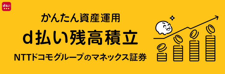 「d払い残高積立」は、株式会社NTTドコモ(以下「NTTドコモ」)が提供するスマートフォンアプリ「d払い」上で、d払い(d払い残高)を決済手段として投資信託を積立するサービスです。