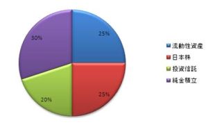 日本株:25% 投資信託:20% 流動性資金:25% 純金積立:30%