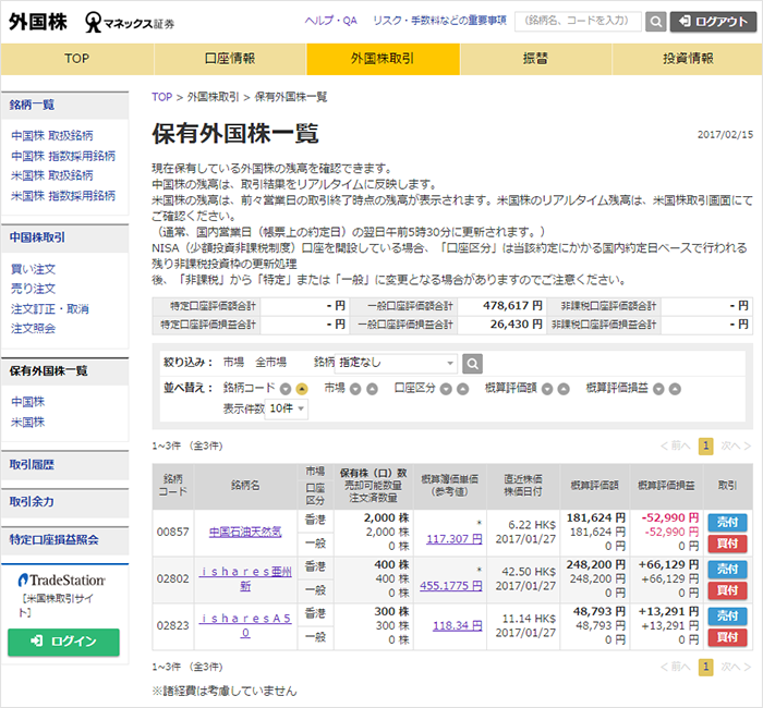 | 対象 | 中国株のお取引および外国株の残高管理のための、ログイン後の外国株取引サイト(PC版) |