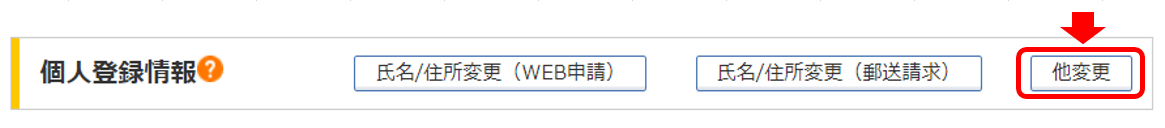 「職業・勤務先」「金融資産」「投資目的」などの情報を更新される場合は、「個人登録情報」「他変更」ボタンより、即時、更新いただけます。