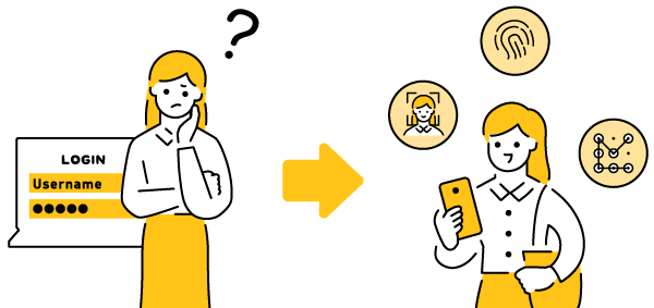 パスキーは、多要素認証を簡略化し、よりスムーズな認証を実現します。ログインパスワードや追加の認証コードに代えて、より強固なセキュリティを備える生体情報や端末(PC、スマートフォン)固有のセキュリティ情報を使用することで、手間を省きつつ高い安全性を確保します。