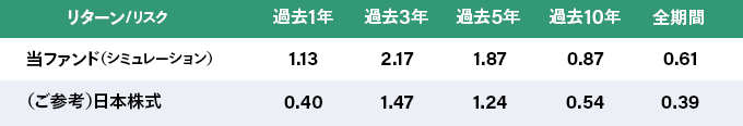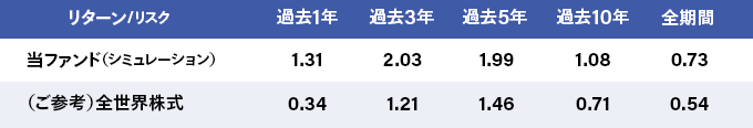 当ファンドの過去のシミュレーションを見ると、全世界株式、日本株式いずれかだけを保有する場合よりも、良好なパフォーマンスとなっています。また、金を組み入れることでリスクを抑えながら効率よく資産運用が可能です。