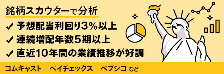 本コンテンツでは、マネックス証券の米国株分析ツール「銘柄スカウター米国株」で、予想配当利回り3%以上かつ連続増配年数が5期以上であり、直近10年間の業績推移が好調な銘柄をスクリーニング・分析します。米国株取引を検討している方や取引する銘柄を探している方はぜひお役立てください。