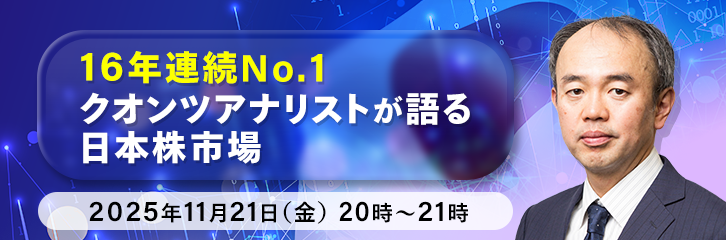 金融情報誌「日経ヴェリタス」アナリストランキングのクオンツ部門で、16年連続で1位を獲得した当社チーフ・マーケット・アナリストの吉野貴晶によるオンラインセミナーを開催します。AI(人工知能)やオルタナティブデータなどを用いた市場動向の分析や株式市場のアノマリーなどを解説します。また、銘柄分析ツール「マネックス銘柄スカウター」を用いて個人投資家でも気軽に実践できる分析手法もご紹介します。