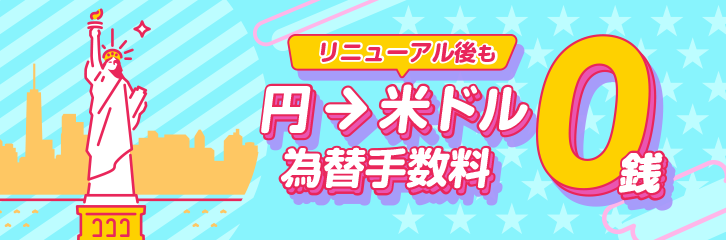 リニューアル後も日本円→米ドルの為替手数料が0銭