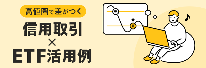 日経平均やTOPIXが史上最高値圏にある中で、短期的な調整は想定されるものの、まだ上昇基調は続くと判断する場合、信用取引で指数に連動したETFの売建てを行って下落リスクを一部抑えれば、保有している現物株はそのままで、ETFが下落した分を利益として追加で狙うことが可能です。