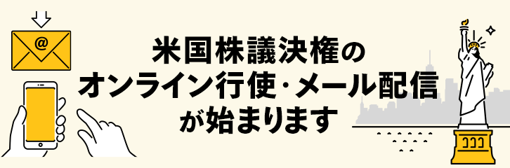 2026年1月27日時点で当社で米国株式を保有いただいている、または直近1年間で米国株のお取引をされているお客様には、1月29日または1月30日に「【重要】米国株議決権のオンライン行使に関するメール配信について(配信希望しない場合はご回答ください)」の件名でメッセージボードを掲載させていただきます。