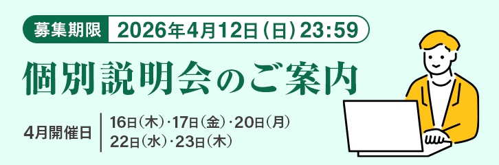 個別説明会にご参加いただくには、事前のお申込みが必要です。