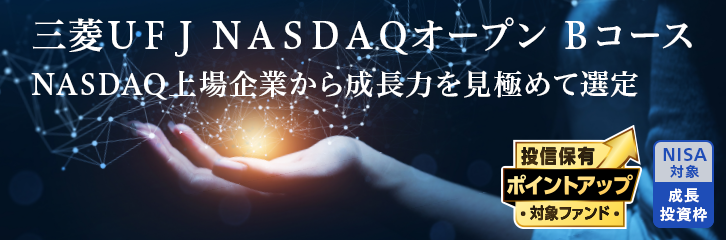 三菱UFJ NASDAQオープン Bコースは、投信保有ポイント付与率0.26%(年率)の対象!