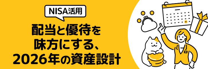 配当金は企業の業績などにより支払われない場合や支払回数が変わる可能性があります。また、株主優待は各企業の判断で廃止・変更になる場合があります。お取引にあたっては企業のホームページ等で最新の株主優待情報をご確認ください。