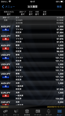 注文履歴と約定履歴をご覧頂けます。